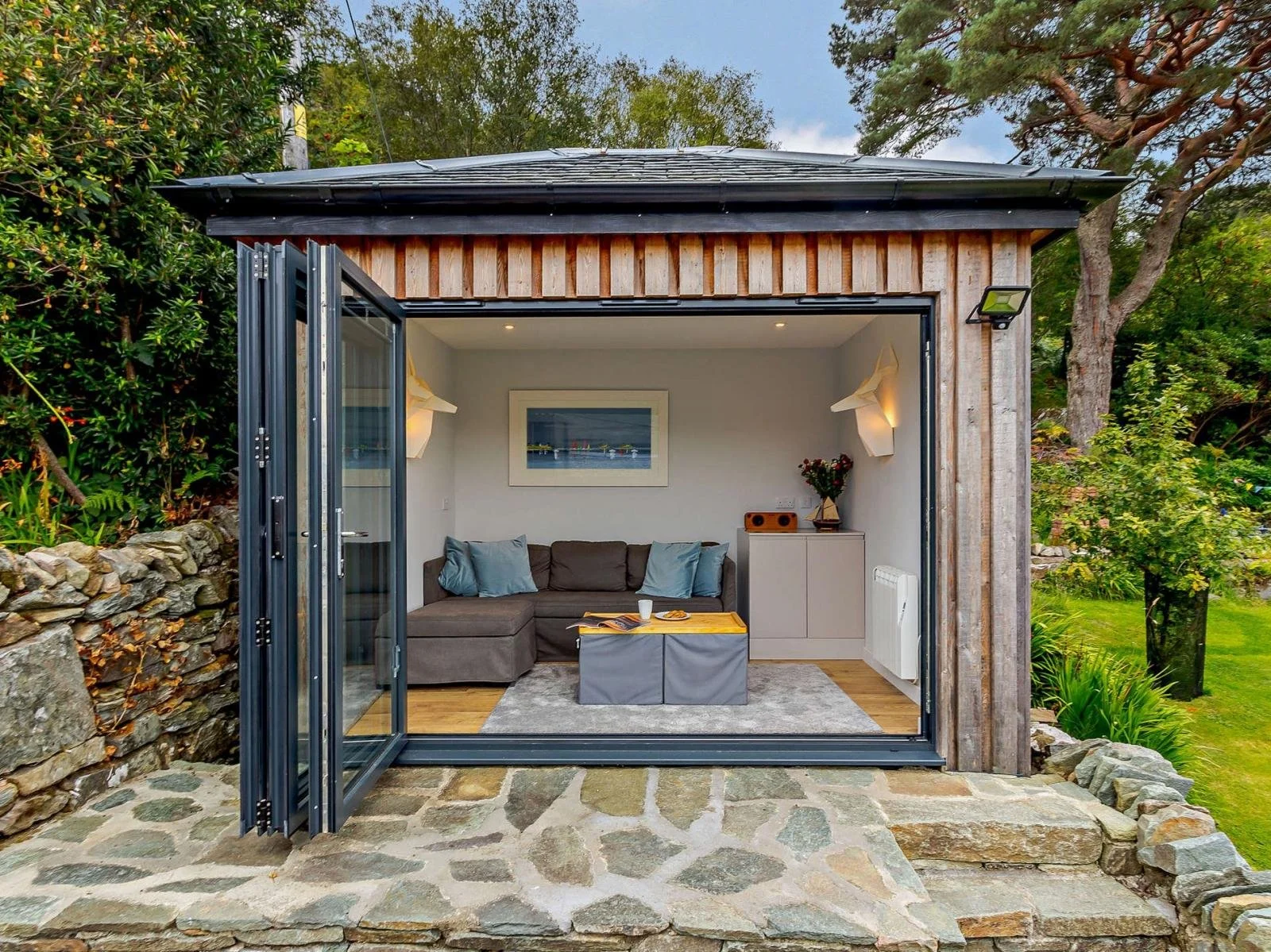 Venturing outside, head up the stairs towards the back of the property is the summer house, on a summer's day open the bi folding doors and relax on the sofa, listening to some music on the Bluetooth speaker and take in the picture postcard views of the village and marina below or on a cooler night close the doors over and enjoy a lazy evening stargazing with hot chocolate. There is a small patio with a picnic table at the front of the cottage where you can enjoy some al fresco dining on a warm evening. Off-road parking for one car is available.